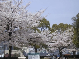 石段を登ると野球場で、そことそれを取り巻く道路に植えられた桜が満開です。野球場には仮設住宅の並んでいた時代もあったのですがそれらは取り払われ、若い人たちがスポーツを楽しんでいます。右のほうに歩いていって公園の一番高い所を左回りに回ります。野球場が終わり芝生がひろがり休憩所が増えて来ます。もう既に一時を過ぎているのですがお弁当を開いている人もあります。未だ場所を探している人もいます。子供づれの人か老夫婦が大部分です。 周回道路の最も北の部分に来ると、さらに北側はふれあい広場になっています。子供たちが沢山遊んでいます。このあたりの桜が一番綺麗に咲いています。二三枚写真を写しました。 ぐるりと回って正面の入口付近に戻って来ました。ここが最初に綺麗と思った所ですが、見直してみるとそれ以上に綺麗です。しかし道端に自動販売機がずらりと並んでいるのはどうかと思います。 余り期待することなく行ったのですが綺麗な花を眺めることが出来て幸いでした。