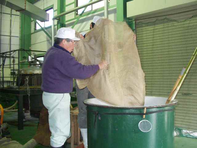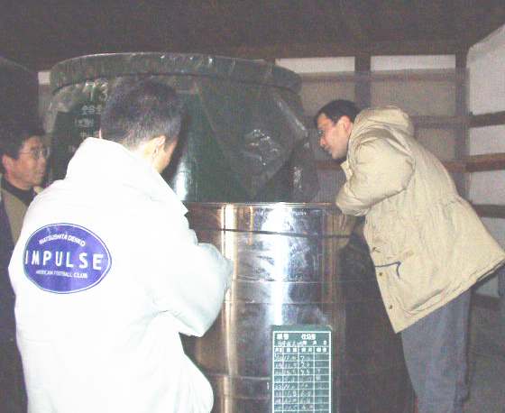 | 同じ六甲山の伏流水でも灘の「宮水」に対して、明石では「寺水」と言われ、昔からお酒の醸造元が何軒かあります。 魚住にあるのが「来楽」さんで、息子さんが東京農業大学の醸造学科を卒業されてがんばっています。蔵元に行きまして、酒造りの様子をこの目で見て、いろいろな話を聞いて、確かめてきました。 |